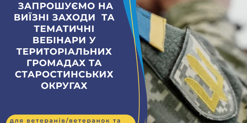 Запрошуємо на виїзні заходи та тематичні вебінари для ветеранів та членів їх сімей
