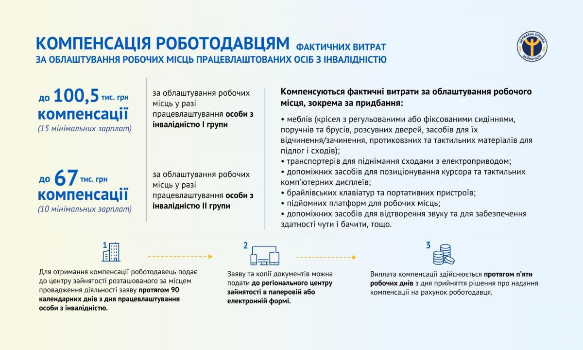 Наприкінці серпня Уряд запровадив програму, за якою роботодавець, що працевлаштував людину з інвалідністю та підготував для неї робоче місце, має можливість отримати компенсацію вартості облаштування такого місця. Передусім слід відзначити, що головна мета програми — посилити зацікавленість роботодавців до працевлаштування людей з інвалідністю і, в свою чергу, надати можливість обмежено придатним громадянам повернутися до активної зайнятості та соціалізуватися.
