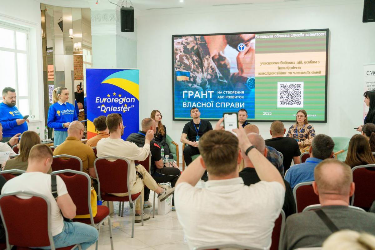 Серед спікерів були адвокати, психологи, ветерани, підприємці тощо. Службу зайнятості представила Ірина Рудковська, член постійно діючої комісії Вінницького обласного центру зайнятості з питань надання мікрогрантів/грантів на створення або розвиток власного бізнесу.