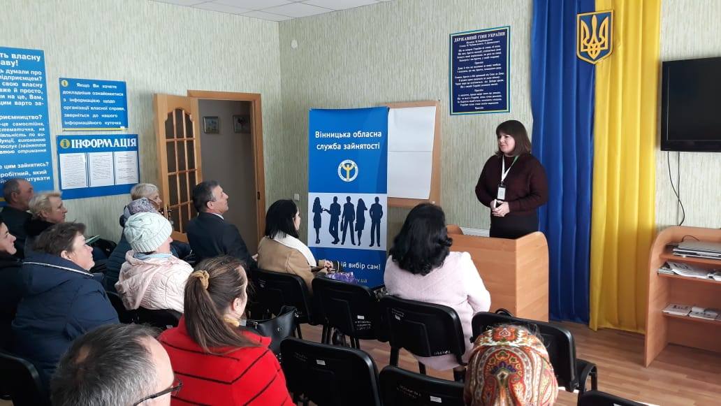 01 листопада 2019 року в Гайсинській районній філії Вінницького обласного центру зайнятості відбувся інформаційний семінар для 27 безробітних громадян за участю начальника Гайсинського відділу обслуговування громадян Галини Кравець та начальника відділу з питань призначення та перерахунків пенсій Інни Теслі .